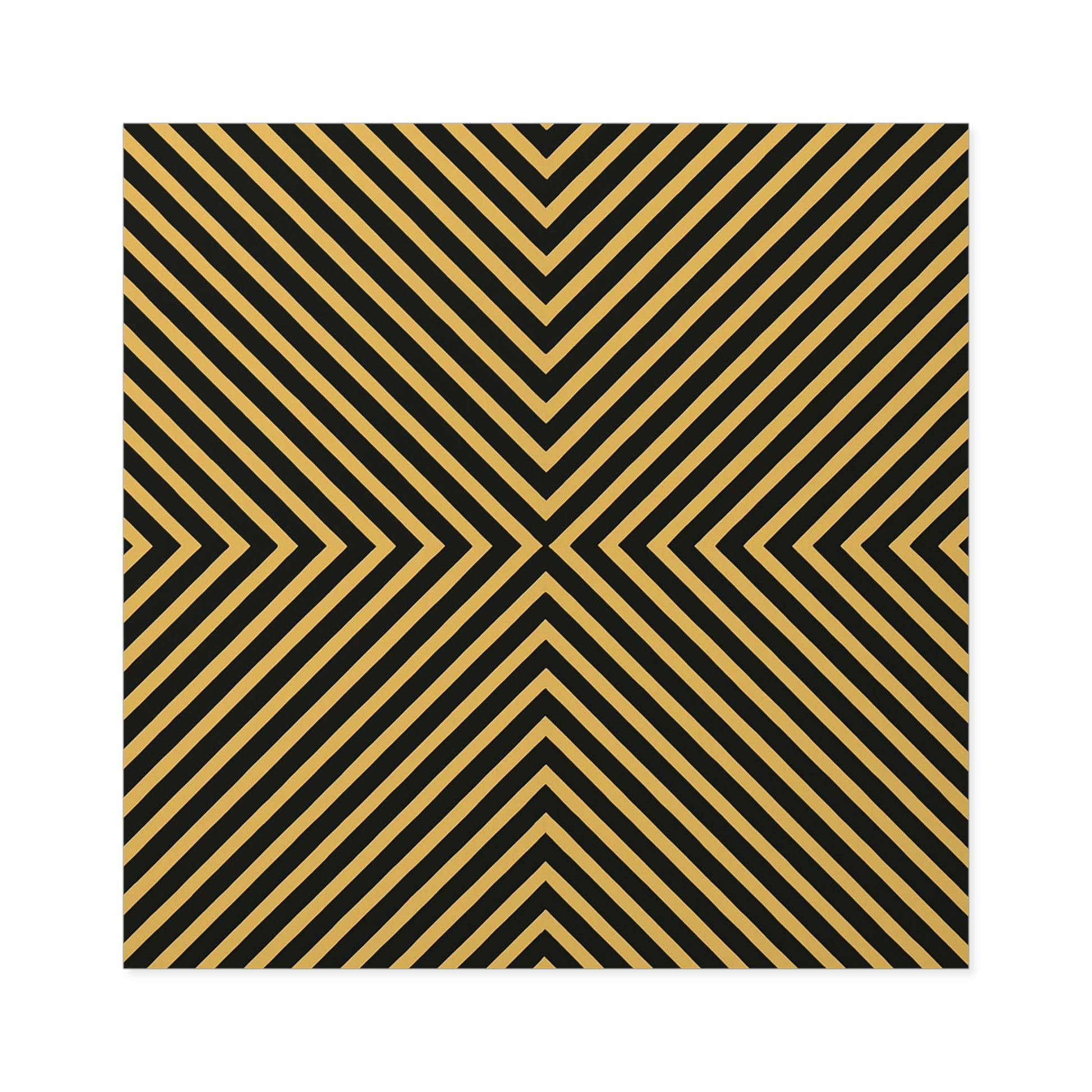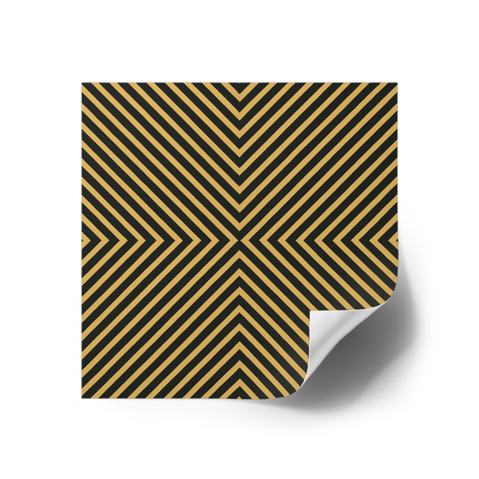 A bold, square vinyl sticker that commands attention. The high-contrast black and gold geometric pattern draws the eye into a hypnotic center, adding modern edge to guitars, laptops, water bottles, and sketchbooks. Weatherproof and laminated, it stays vivid through rain, sun, and daily wear — ready to travel with you from city streets to studio sessions. Peel and press for an instant style upgrade that reads luxe, graphic, and confidently unapologetic.