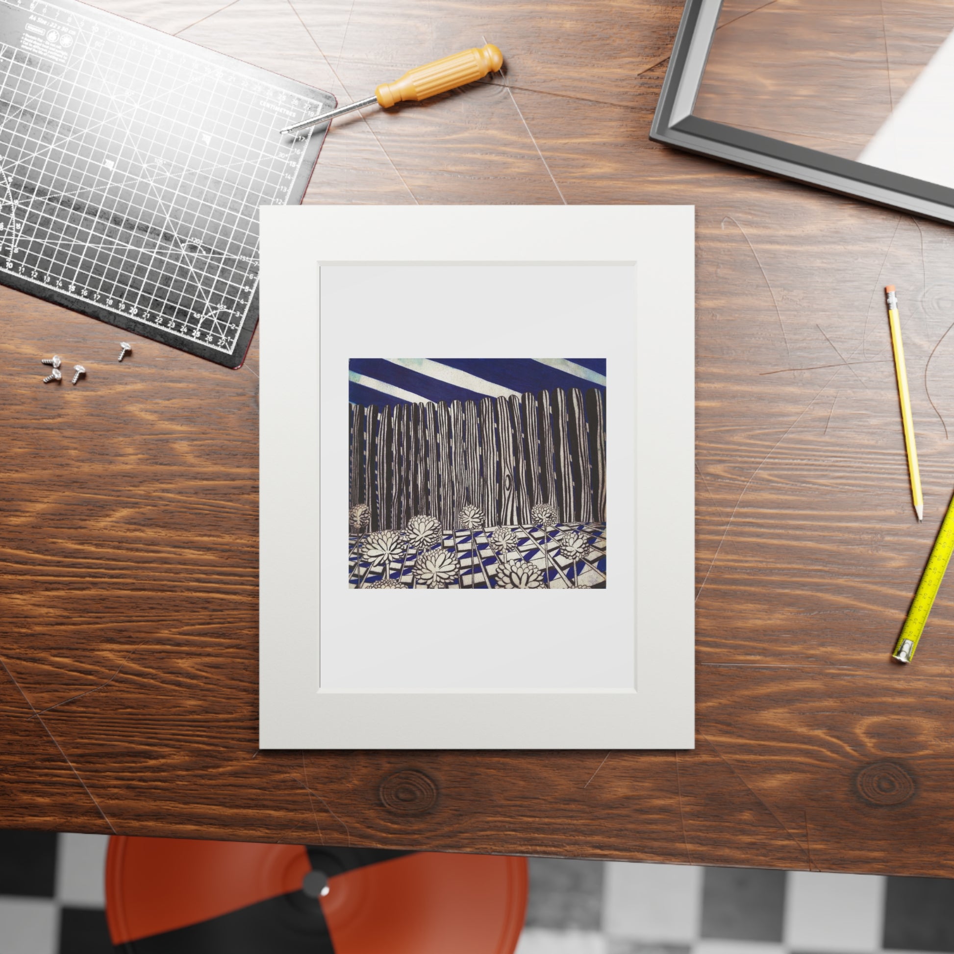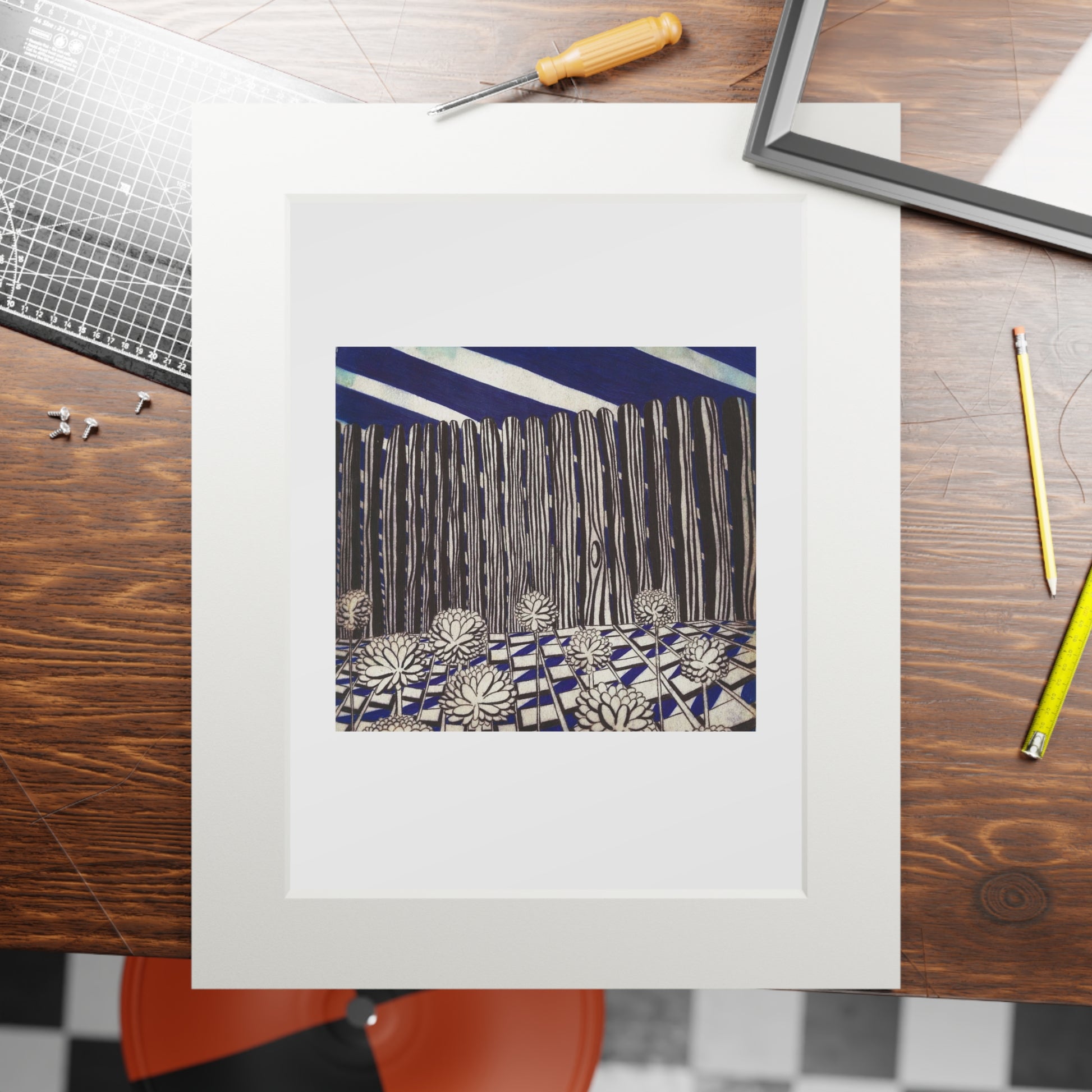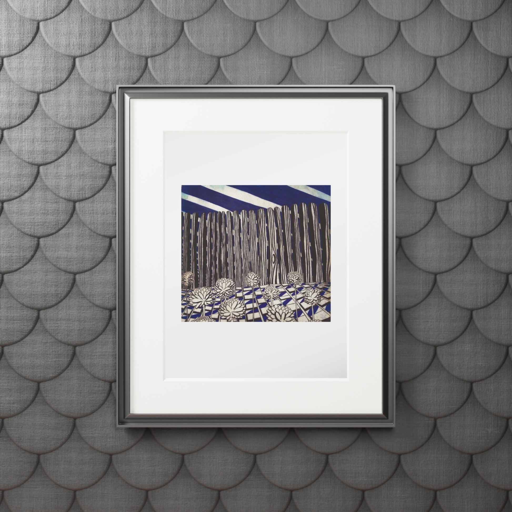 This fine art print, presented with a crisp natural-white passepartout, brings a quiet, contemplative landscape into your space. The giclée reproduction captures deep navy tones and tactile ink marks with bright, lasting color on textured 175gsm paper. The wide 2mm window mount gives the artwork breathing room and a gallery-style presence on the wall. Ship it loose for you to insert into your own protective frame, or pop it into a display at a cozy reading nook — it settles into rooms that favor calm, curated corners and thoughtful decor.